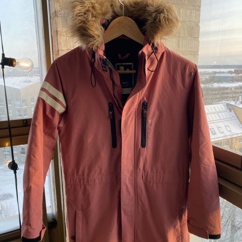 Vähän käytetty, ehjä ja siisti. Vyötärössä säätömahdollisuus. Huppu irroitettava. Jaloissa lumisuojalahkeet, ei lenkkejä. Ei lemmikkejä ja savuton talous. Nouto Vatiala tai kulkeutuu Tayssille. Reilu koko 160 cm. Käteinen.