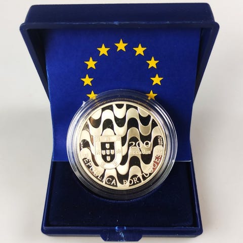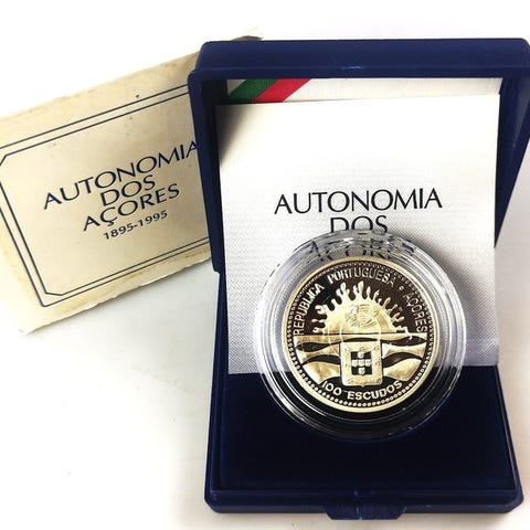 Portugali. Hopeankestävä 100 escudon kolikko - 100 vuotta Amadeo Souza Cardoson syntymä (21g)