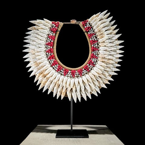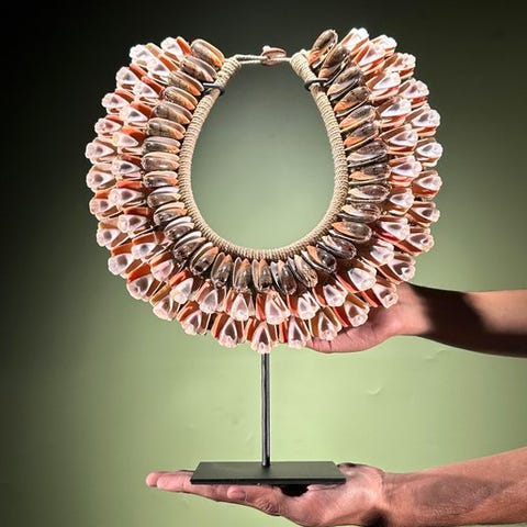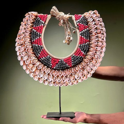 Seria alkuperäiskansojen kaulakoruja, jotka on tehty nassa-kivistä. TOLAÏ-kansa, Uusi Britannia, Papua-Uusi-Guinea. Kaulakorut sisältävät satoja pieniä nassa-kiviä. Merkittävää on, että lähes kaikki niistä ovat saman kokoisia, mikä antaa niille erittäin sileän, primitiivisen muodon.