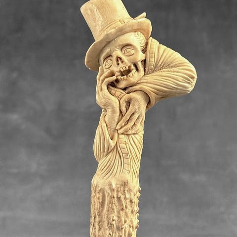Kaiverrus, Stunning Grim Reaper carving from deer antler on a custom stand - 20