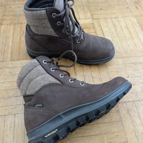 Michelin kitkapohjilla ja goretex kalvolla varustetut saappaat.