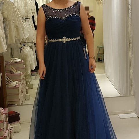Myydään kaunis, kerran käytetty tummansininen Mecco-liikkeestä hankittu vanhojentanssimekko. Mekon koko on 34 ja pituus oli sopiva 166 cm tanssijalle, jolla oli matalat kengät jalassa. Selässä nyöritys, joten kokoa on helppo säätää. Toisessa kuvassa mekon väri näyttää oikeaa sävyä tummemmalta.