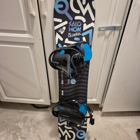 Elan lumilauta Burtonin siteillä. Käytönjälkeä löytyy, mutta lauta sopii hyvin vaikka harjoitteluun. Kantit kunnossa.