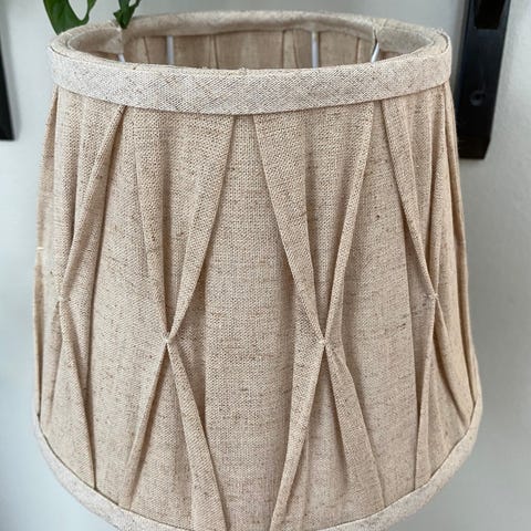 Iso vaalea/luonnonvalkoinen lampunvarjostin. Ollut jalkalampun varjostimena. Siistissä kunnossa, ei tahroja tai lommoja.