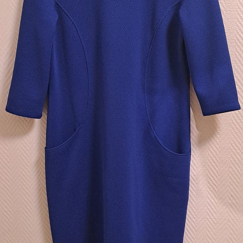Pari kertaa pidetty ja pesty mekko. En löytänyt moitittavaa paitsi silittämättömyys. Napit alas asti, kangasvyö, rintataskut ja sivutaskut.