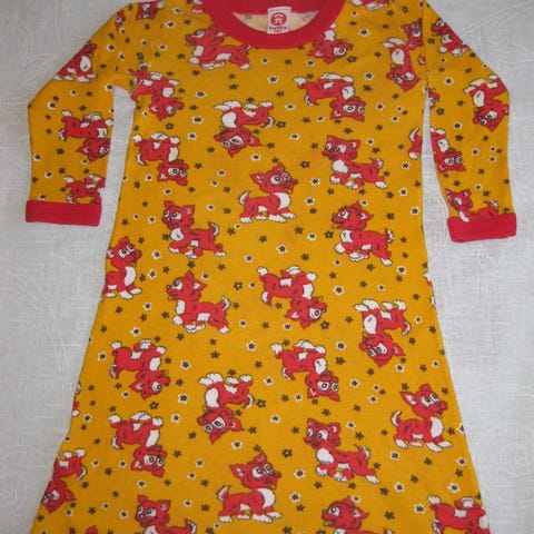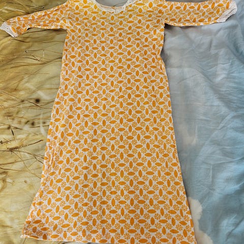 Retro keltainen frotee yöpaita, helmassa kiristysnauha. Kokolappu hävinnyt mutta n. 70 -80 cm.