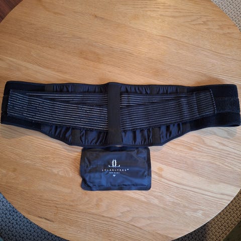 Lola & Lykke raskausajan tukivyö, koossa L. Kunto on erittäin hyvä ja tarrat toimivat moitteettomasti, tätä on käytetty todella vähän. Toisessa päällis"nauhassa" on pientä rispaantumaa, ei haittaa mitenkään käyttöä. Nähtävästi kerran tarranauha mennyt siihen päälle ja irroitettu.