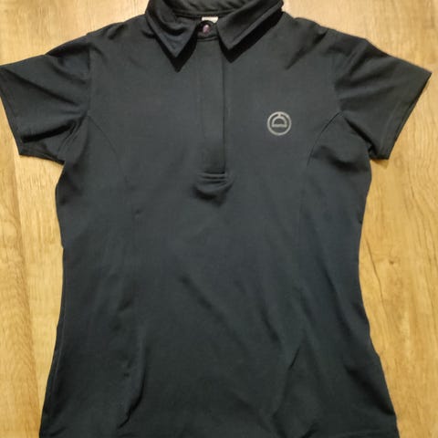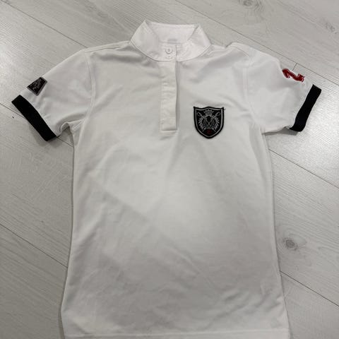 Valkoinen lyhythihainen Montar ratsastuspaita koossa XS. Kauluksessa kauniit strassit.
