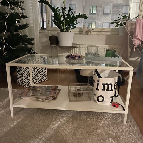 Myydään hyvässä kunnossa oleva pieni lasinen pöytä. Toimii esimerkiksi sivu- tai sohvapöytänä. Ollut käytössä parvekeella, mutta ei ole ottanut siitä kulumaa. Ei huoju ja kestävän oloinen.