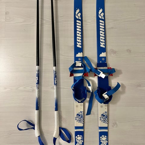Sukset saa kiinni lapsen omiin kenkiin. Kunto hyvä.