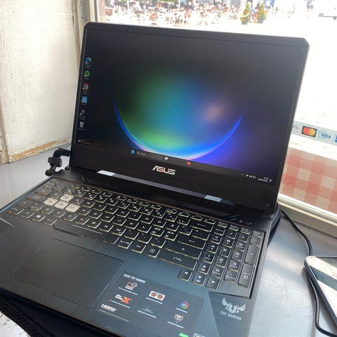 Asus tuf gaming fx505dd + gaming mouse, laptop bag,and green cell new battery