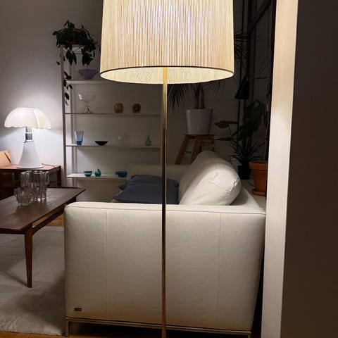 Messinkiä, akryylikupu ja kierretty nahkaverhoilu. Korkeus 145 cm. Tai tarjotkaa muuton tieltä pois kun lähen ulkomaille