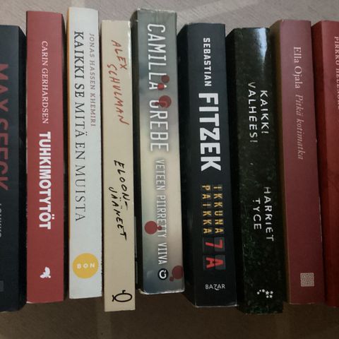 Kuvissa näkyvät 87 kpl hyväkuntoisia pokkareita (kerran luettu). Jännitystä, romantiikkaa ym.