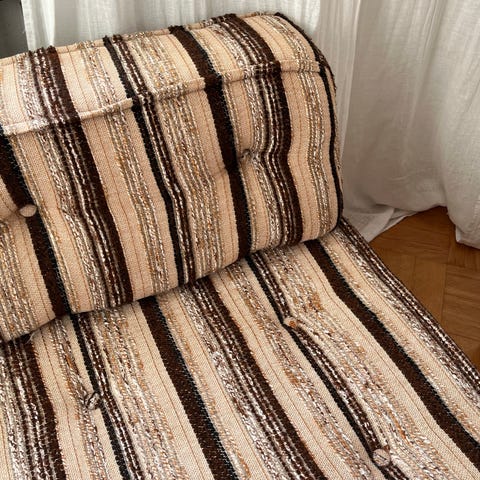 Hakusanat: sohva, ruskea, keltainen, minimalistinen, moderni retro, kaksivärinen