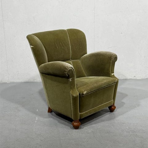Hakusanat: Tuoli, tuolit, vintage, retro, nojatuoli, nojatuolit, lepotuoli, huonekalu, huonekalut, puujalat, raidallinen, napitettu, käytetyt huonekalut, vintage huonekalut, korkea selkänoja