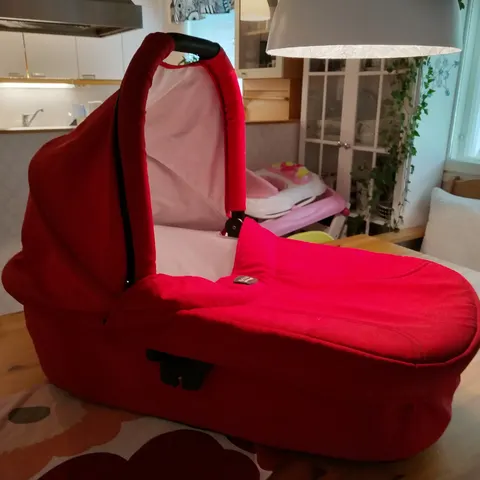 Yhdellä lapsella pienen hetken ollut vaunukoppa. Britax Römer hard carrycot.