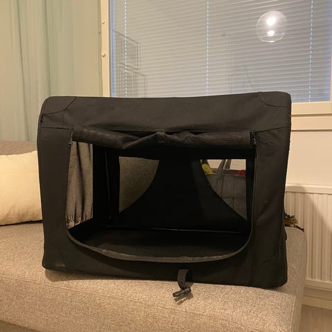 Käytetty, mutta perussiisti kevythäkki koiralle. Puhdistan vielä toistamiseen ennen myyntiä. Torista ostettu omalle koiralle, mutta ei tullutkaan käyttöön.