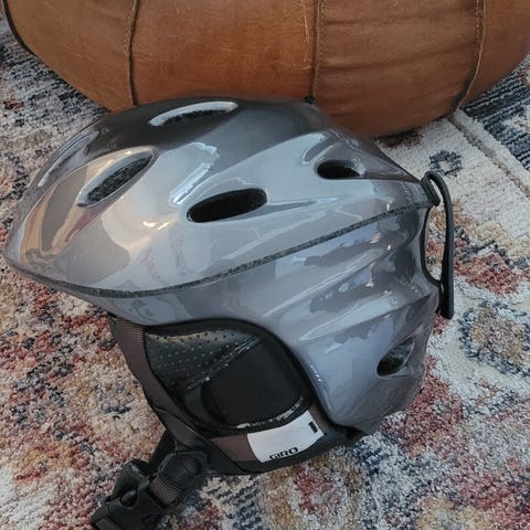 Pari vuotta käytetty laskettelukypärä jossa naarmuja ja kolhuja mutta ajaa yhä asiansa. Käy myös pyöräilykypäränä.