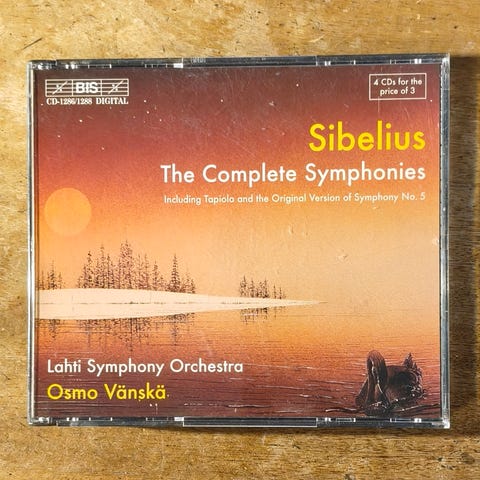 Sibeliuksen sinfoniat ja Kullervo (puuttuu 5. sinfonia). Johtaa Paavo Berglund. Ja ooppera Don Carlos, rooleissa mm. Placido Domingo.