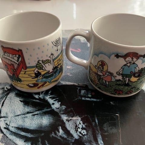 Kuvien mukaiset hyväkuntoiset Peppi Pitkätossu vintage mukit 2kpl. Nouto Helsingin Oulunkylästä tai Toridiili.
