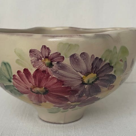 Iästään huolimatta tämä vati on moitteettomassa kunnossa, ainoastaan pohjassa hienoista krakelointia havaittavissa.