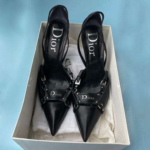 Kerran juhlissa 90-luvulla käytetyt Christian Diorin vintage matalakantaiset kengät. Ostettu New Yorkista. Hyvässä kunnossa, jenkkikoossa 8 eli suomalaisittain 38,5. Malli hieman kapea, tästä syystä jäi käyttämättä.