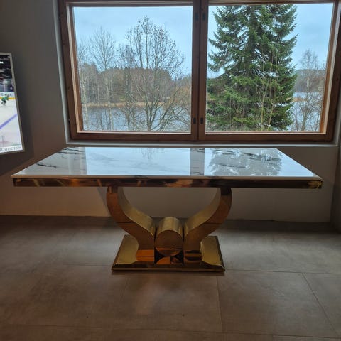 Tammipöytä 94x180 cm ja kannen paksuus 4 cm joten painava ja tukeva pöytä.