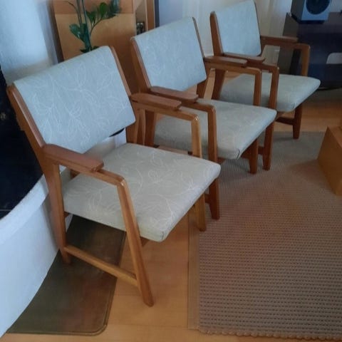 Toisessa tuolissa istuinosaa lähes huomaamaton jälki näkyy kuvattuna