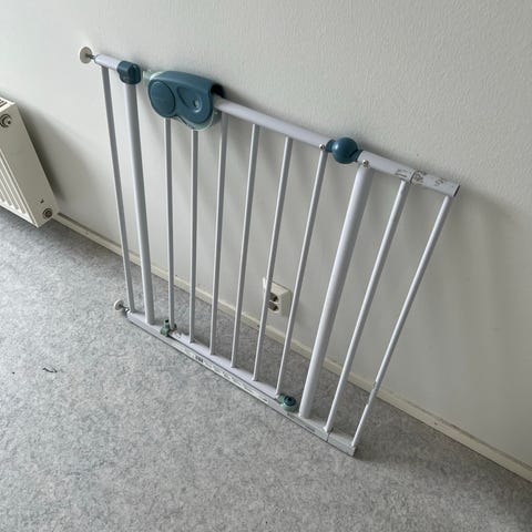 Myydään kaksi valkoista metallista turvaporttia oviaukkoon tai portaikkoon. Molemmissa portti aukeaa ylhäältä lukosta ja mukaan tulee kiinnitysosia, toisessa portissa on pienempi kulkuluukku esim. kissalle. 65 e / kpl.