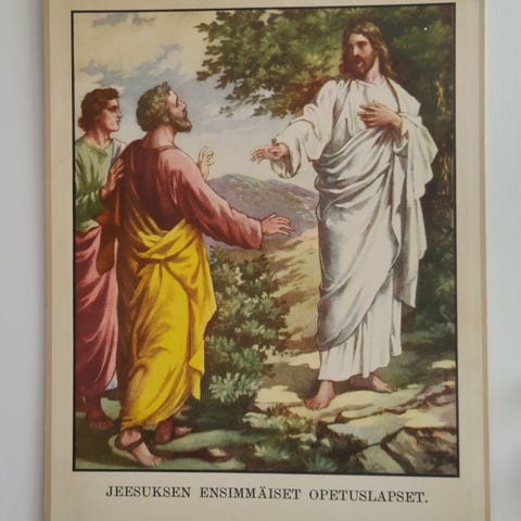 Opetustaulu Jeesus siunaa lapsia. Koko 67x49cm.