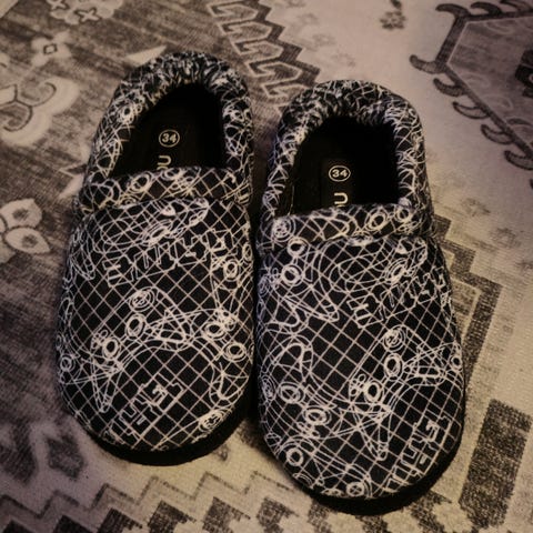 Tohvelit on pesty ja paikattu, mutta kulumaa on siellä täällä. Toimivat kuitenkin edelleen.