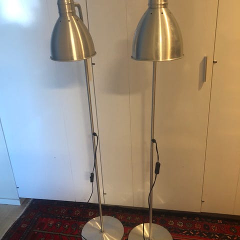 Annetaan kuvan mukainen jalkalamppu ja polttimot, korkeus noin 175 cm. Voi sytyttää 1-3 polttimoa. Pieni vekki varjostimessa, näkyy kuvassa.