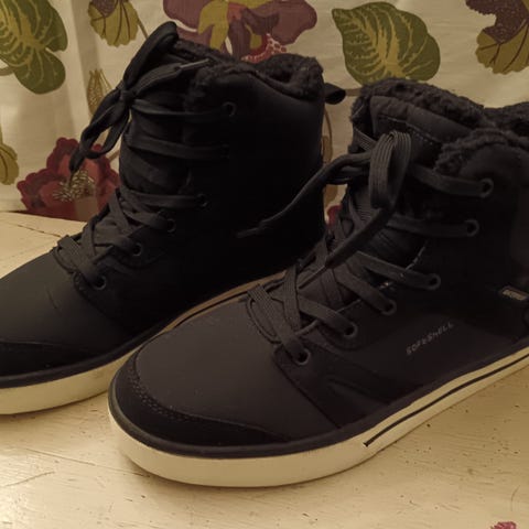 Käyttämättömät talvikengät karvavuorella. Jotain keinomokan tapaista ja näköistä. Koko 39. Voi pitää varsi taitettuna tai pitkänä.
