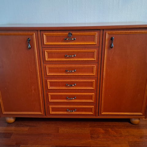 Alle kolme vuotta sitten ostettu senkki Vekeltä. Erittäin siistissä kunnossa ja hyvin tilaa. Neljä vetolaatikkoa ja yksi kaksi hyllyinen kaappi.