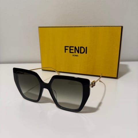Fendi First Crystal aurinkolasit naisille, soikeat kehykset ja kultainen runko. Sopivat suojaamaan silmiä auringonvalolta. Maksoin laseista 343€ Mutta pyydän 200€. Hinnasta voi yrittää tinkiä. Sain nämä lahjaksi mutta kuittia ei ole jäljellä. Ovat Aidot fendin lasit!