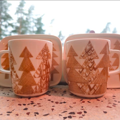 Marimekko Kuusikossa mukit ja kulhot