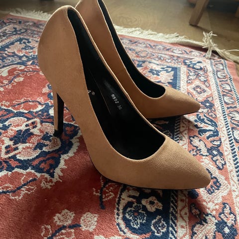 Myydään uudenveroiset, muutaman kerran käytetyt samettipintaiset piikkikorkokengät (korko n. 8cm). Sopii sirolle jalalle, koko 36.