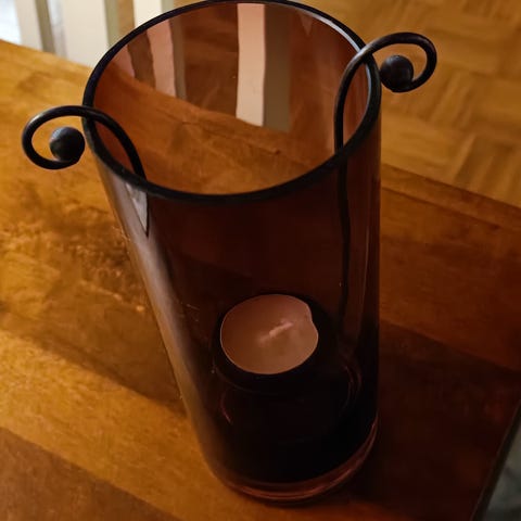 Alareunassa Pentik teksti. Metallinen tuikkuosa helposti irrotettavissa joten voi käyttää tuikkukippona tai maljakkona.
