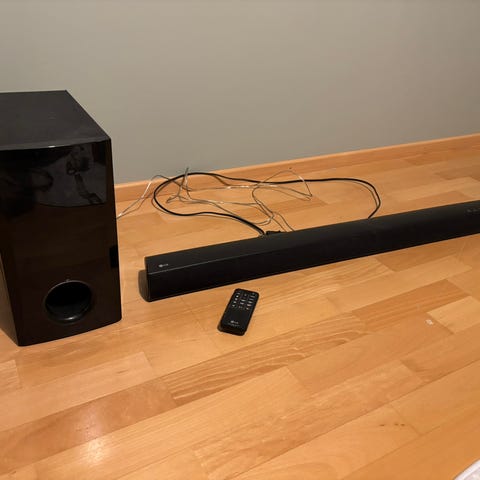 LG NB1580 soundbar mustassa värissä. Laite sisältää optisen liitännän ja Bluetooth-yhteyden. Varustettu äänenvoimakkuuden säädöllä, mykistyspainikkeella ja automaattisella virrankatkaisulla. Pituus n.88cm, syvyys n.9cm ja korkeus n. 6cm.