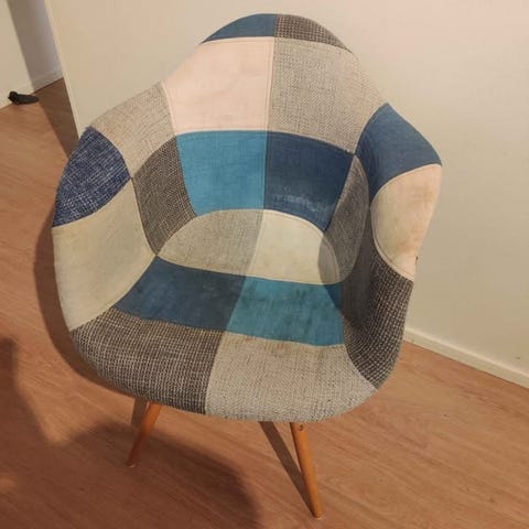 Tuoli edustaa modernia retrotyyliä, jossa yhdistyvät perinteiset ja nykyaikaiset elementit. Kuviointi tuo esiin leikkisän ja ainutlaatuisen ilmeen.