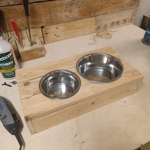 Puisia ruokakuppi telineitä. Eri korkeuksia.