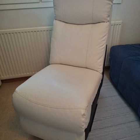 Nahkainen kulmasohva, levitettävä. Divaaniosassa säilytystila.