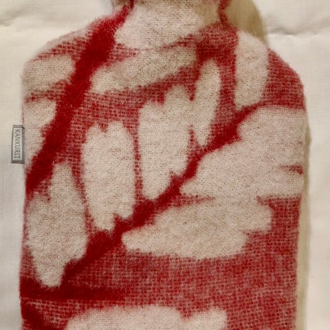 Lapuan Kankurit kuumavesipullo, Verso. Sisällä 2 litran kuumavesipullo (muovia). Päällinen 100% villaa. Voidaan käyttää myös kylmänä.
