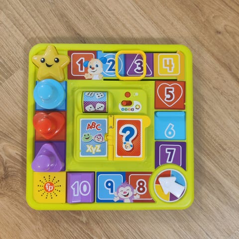 Playgro pop up lasten lelu äänillä ja valoilla, valmistettu muovista, värikäs ja kantokahvalla varustettu. Lelussa on erilaisia muotoja ja värejä, jotka tarjoavat leikki- ja oppimismahdollisuuksia lapsille. Käytössä ollut vuoden, erittäin siisti.