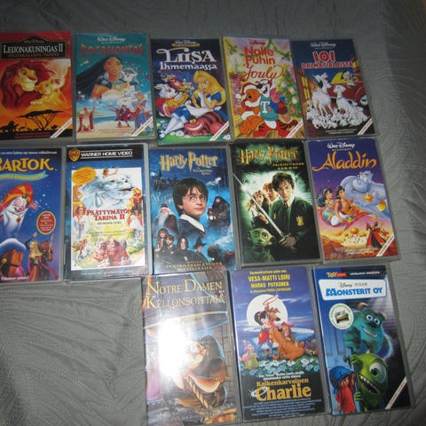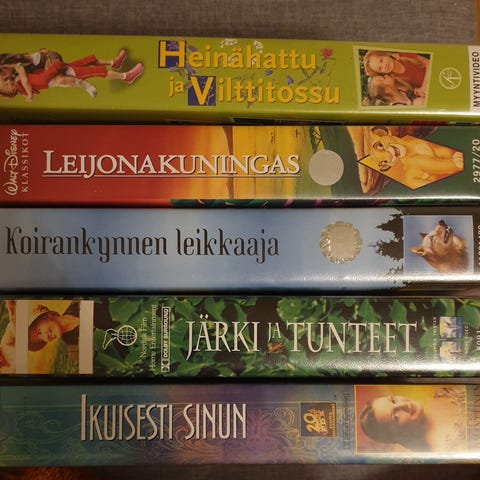 Videouutiset Luettelo Numero 1 on luettelo, joka sisältää tietoa ja kuvia erilaisista VHS kaseteista. Luettelossa on useita sivuja, joissa esitellään eri elokuvia ja videoita tekstin ja kuvien muodossa.
