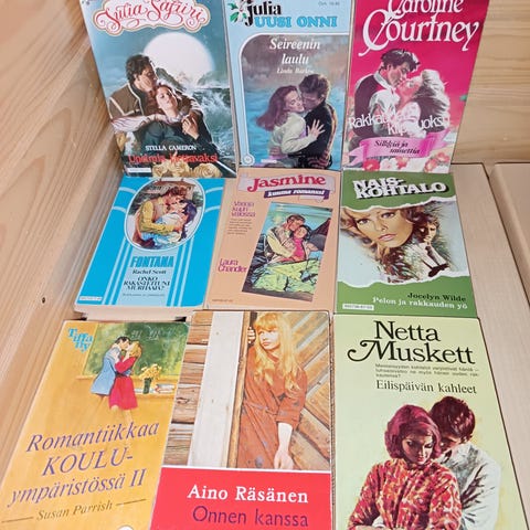 Myydään settinä viisi pokkaria, kevyttä viihdekirjallisuutta.