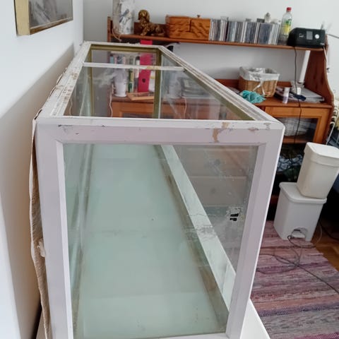 Tarvittaessa voin vielä myydä erikseen tämän akvaarion alla olevan hyväkuntoisen valkoisen Kallax 2x2 hyllyn hintaan 20 euroa.
