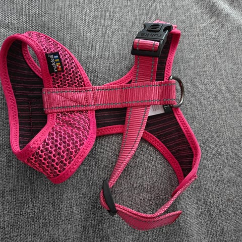-Mustat rukka säädettävät Y-valjaat koko S (55-85cm), hyvä käytetty kunto.
