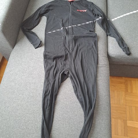 CCM jääkiekkoilijan musta yksiosainen alushaalari koko M. Polyesteriä.