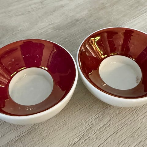 Arabian tuikut/lyhdyt, halkaisija 8 cm, korkeus 4 cm. Molemmissa käytönjälkiä, kulumia.